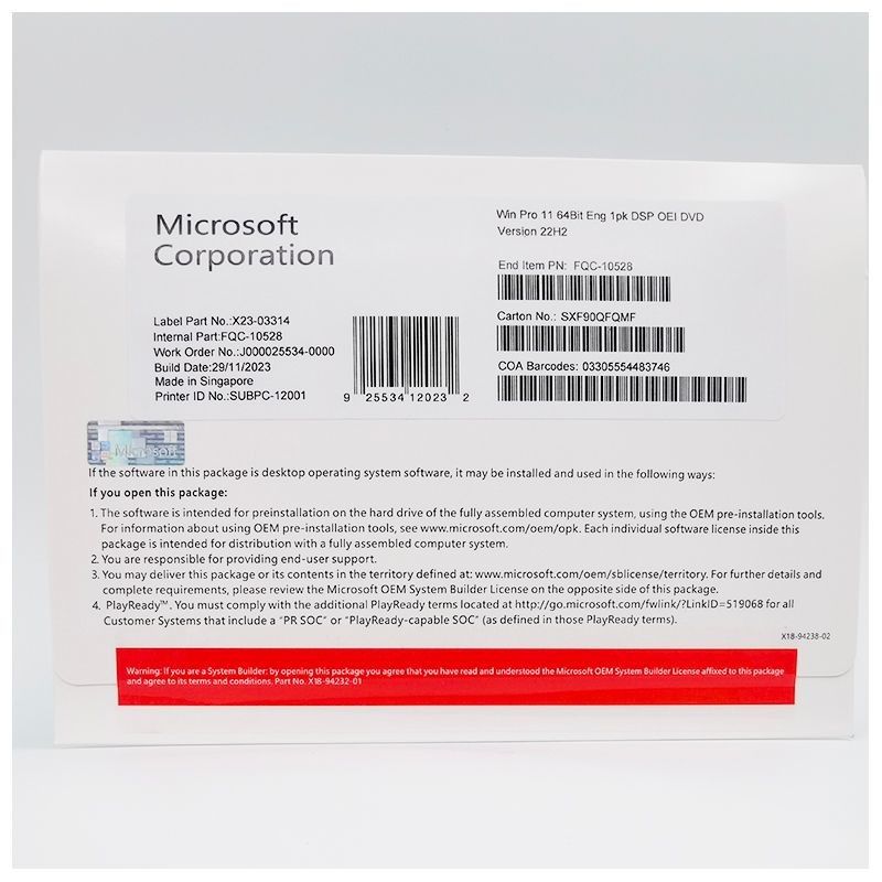 Original Win 11 Pro OEM 64 Bit DVD,bahasa Inggris,Korea,Rusia,Perancis,Jerman,Versi Bahasa Italia